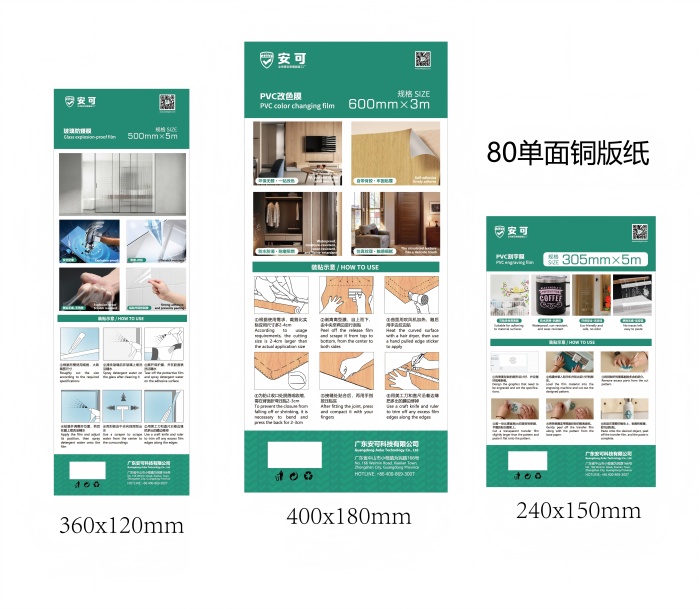 فيلم رول صغير بهذا العرض: العرض الشائع هو 20 ، و 23 ، و 25 ، و 30 ، و 40 ، وما إلى ذلك ، وطول حوالي m. يمكن استخدامه للأبواب والنوافذ ، والأثاث ، فيلم الديكور ، إلخ. على سبيل المثال ، مجموعة أفلام التزيين الخاصة تحتوي على مواصفات من من من من من من من من نوع ANKE * 3 م ؛ من من من من من من من نوع ANKE X 50 م. كما توجد لفائف صغيرة من أفلام ورق الحائط بعرض صوفي من من من من من 10 إلى 12 مترًا.-فيلم لفة صغير واسع: يمكن أن يصل العرض إلى ، أو حتى أوسع ، وعادةً ما يتم تحديد الطول وفقًا للاحتياجات الفعلية. غالبًا ما يستخدم لطلاء الألواح الزخرفية الكبيرة ، مثل قناع زخرفي الحبوب الخشبية من كلوريد البولي فينيل من Guanrou لمجموعة ANKE ، بعرض تقليدي من.